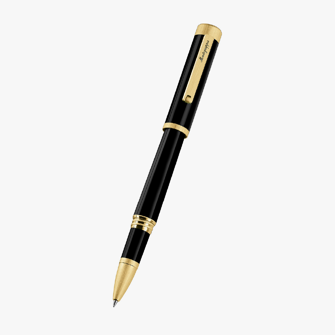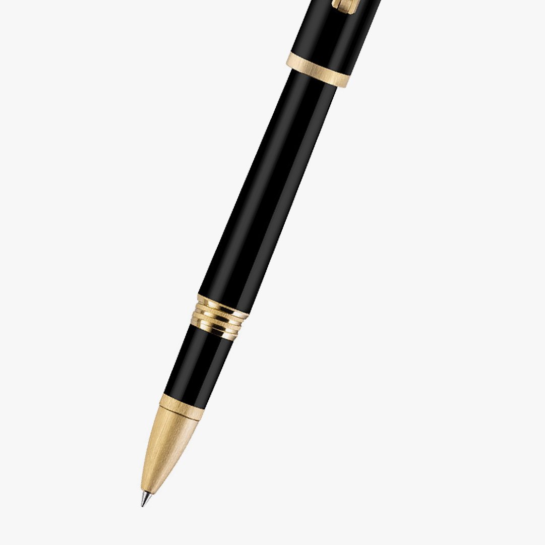 Rollerball Zero acero tono oro amarillo y resina negra
