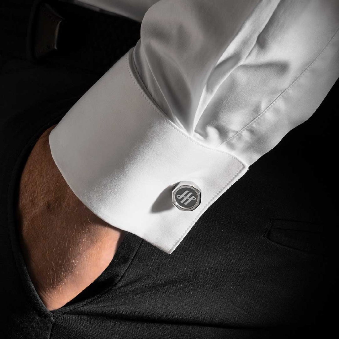 Mancornas Otto octogonales acero chapado paladio y cristal de zafiro